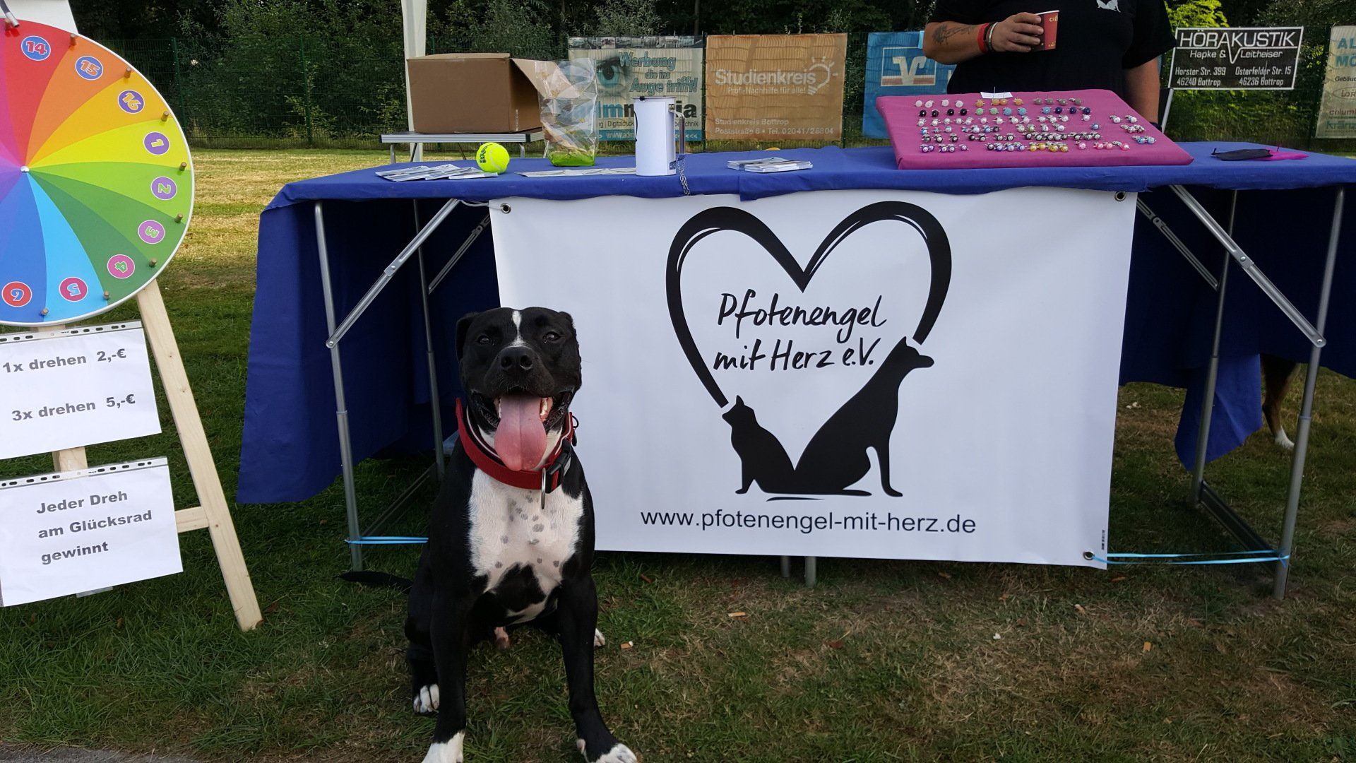 Zusätzlich zu den Spendengeldern sind wir mit unserem Stand auf der Bello Messe/beim Dog walk/beim Hundeschwimmen Bottrop unterwegs. Dort bieten wir dann zusätzlich selbst gebackene Hundekekse an, man kann das Glücksrad drehen oder Tierzubehör (Hundemäntel, Spielzeug für Hund und Katze, Halstücher, Halsbänder...) kaufen. Einmal im Jahr haben wir in der Innenstadt von Recklinghausen (im Rahmen "Recklinhausen leuchtet") einen Waffelstand, wo man Waffel gegen Spende erwerben kann. Fotos von den verschiedenen Events haben wir hier eingestellt.